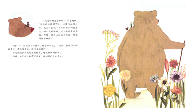 “可以啊,她是大熊的新房客,她小小的,而且还经常戴着一个大大的黑黑的眼镜,最最重要的是,她提着和妈妈一样的红色包包,可漂亮了……”孩子说道。