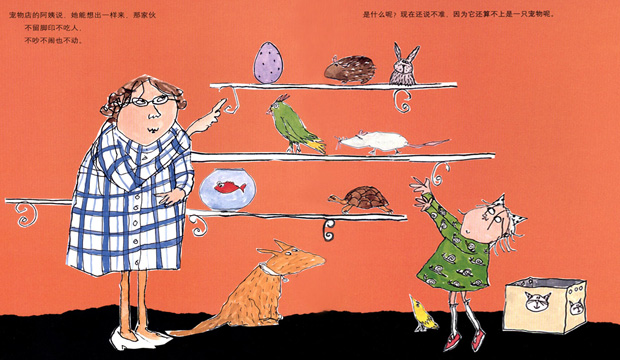 孩子迫不及待地翻开书的最后一页,然后哈哈大笑地说:“妈,我们也养一个吧!”