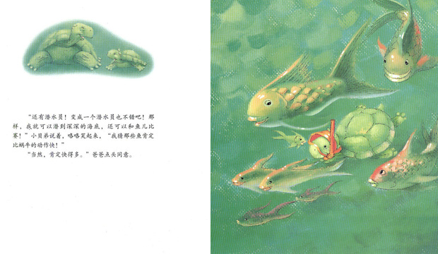 “还有……还有……蜗牛那么小,乌龟一只脚的长度就可以让蜗牛爬很久了,哈哈……”