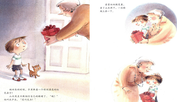 过了几天,孩子去奶奶家,捧回了一盒巧克力。