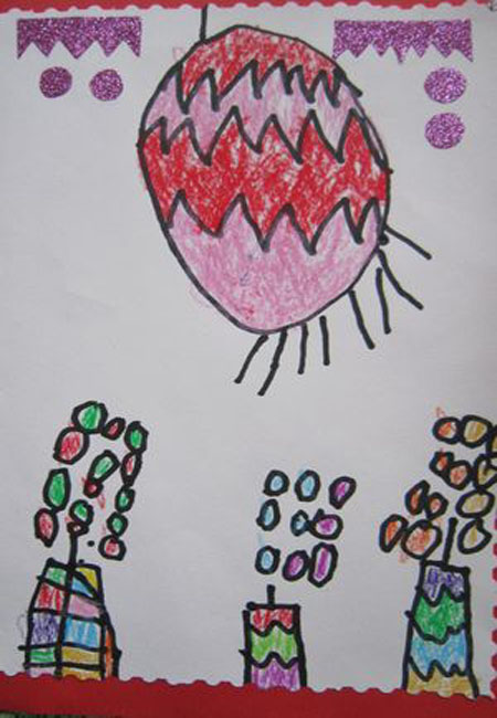 说完,COCO立马拉开她的小书包,拿出一幅画说:陈老师说,国庆节是祖国的生日!全国人民都放假!祖国生日嘛,怎么可以没有蜡烛和蛋糕呢?
