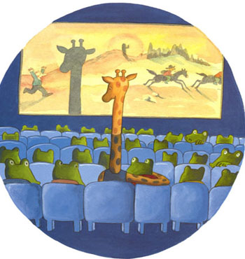 看完电影后,孩子对我说:“妈妈,我前面坐着一个长颈鹿,他很高啊!”