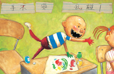 “妈妈,大卫总惹麻烦,真不乖!”孩子看完《大卫惹麻烦》绘本后说。