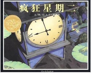 《疯狂的星期二》是一本以黑色主调的幽默绘本,通篇只有四句文字:“星期二晚上8点左右。”“午夜11点21分。”“凌晨4点38分。”“另一个星期二晚上7点58分。”