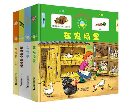 四本转转书终于拿到手了,分别是《在家中》《在农场里》《宝宝的一天》《动物和它的宝宝》,迫不及待地翻弄了好久,兴奋的心情还是没法平息。