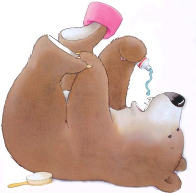 在反复读了这么久,我也爱上了这只大笨熊,因为它是我家儿子的写真,一只可爱又喜欢捣蛋的大笨熊!他总能轻易地把周遭的一切弄得乱七八糟!而当我们面对这样一位连用勺子吃豆子都不会的大熊时,我们却在不经意中成了儿子眼中的可爱善良的大笨熊了,在我们大大的怀抱里,儿子所有的烦恼都会消失。当我们和儿子抱成一团,滚成一堆,当孩子在我们的身上摸爬滚打时,我们就会开心得又叫又笑。
