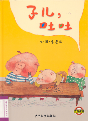 这本图画书的文字故事和绘图呈现(包括印刷文字的呈现方式),都达到了自然融会、浑然一体的状态。作者在绘画时综合采用了版画手抄纸、水性颜料、彩色铅笔,使整个画面呈现出了水墨画渲染的效果。小猪的造型拙朴生动,表情丰富;画面分割和整体设计灵活而不凌乱。在印刷文字的呈现上,作者也颇为用心。她通过字形大小的变化来表现小猪们不同反应和七嘴八舌的情态;通过句子的反复和交替来表现人物纷乱和焦虑的心情。因此可以说,《儿子,吐吐》是一部充分体现了图画艺术魅力的优秀作品。
