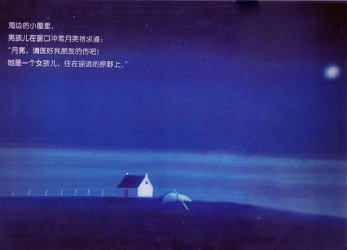 女儿翻到第二页,上面写着“原野的小屋,女孩儿从窗口仰望着夜空……”突然女儿大声说:“妈妈,那个男孩说的朋友会不会是这个小女孩?”