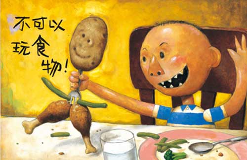 3.最后一页的“宝宝乖,妈妈爱你”,算是画龙点睛吧,本来我觉得有些突兀,觉得和前页衔接不够流畅,但对宝宝却有意想不到的作用;某天睡觉,宝宝突然冒出一句“宝宝乖,妈妈爱你”,让我突然觉得这书里的这句比前面任何一页的“大卫不可以”力量都大。