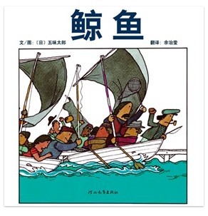这种图像思考的创作方式,使五味太郎的构图和布局,有一贯的个人风格。《鲸鱼》这本图画书以蓝、绿为主色调,传递纯净的、冷冷的、水的感觉,配合朴拙的线条和造型,使每一页图画好像被框住的风景,勾勒某个素朴的区域场景,也同时暗示这些景物和故事有超越时空的普遍意义。