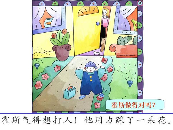 霍斯踩花、不回答、发出怪声、倒在地上,显得不讲理又不听话。妈妈虽不像读者从头知道小孩经历什么事,却也没有急着要求解释或教训责骂。她意会到情绪是细微却实在的东西,必须把握当下情境去认真对待。她巧妙地运用小孩的好奇心,让小孩子动站起来、靠过来、跟着大人做。她让霍斯尖声大叫、吐舌头、敲打、喷火,换言之,她及时提供小孩适当安全的发泄管道,防止正常的负面情绪演变成真正具伤害性的行为。她知道当小孩满腹怒火时,恐怕说不出、听不进、也学不会什么道理。霍斯需要先确定自己的坏情绪被了解了,所以他需要的第一个讯息不是道理,而是接纳。妈妈的汤,适时保护他的安全感。当母子肩并肩站在同一线上,沟通与教育才会真正开始。