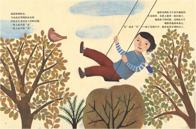 书名叫《马克的秋千》。但是“秋千”在整本书的图画和文字中只出现过一次,这是一件有意思的事。在意大利文里,我们把它译做“秋千”的这个词有多重的意思,不仅可以指秋千,还可以指跷跷板——不是前后摆,就是上下摆。而文字中不断地重复“‘是’或者‘不’”,不论从韵律上还是意义上,也象征了一种摇摆的心理状态。所以,也许可以说马克的秋千是我们每个人心里的秋千:小到晚饭吃什么,大到能不能求婚,我们没完没了地在摇摆中度日,千万种烦恼便从这些摇摆里滋生出来。