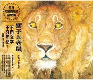 当时从日本买到的几本相当精致的图画书,其中《狮子与老鼠》及《北风和太阳》是我最常用的欣赏教材。这两本书取材自《拉封丹寓言》,而插画由瓦尔德史密斯所创作。画家在插画风格上灵活运用了鲜丽、明快的蜡笔和水彩来混合表现,有些部分更巧妙地利用了印刷品上的现成纸张作剪贴,使每一幅画呈现出非常艳丽、明快的视觉效果,犹如听到色彩的交响曲一般,效果非凡。
