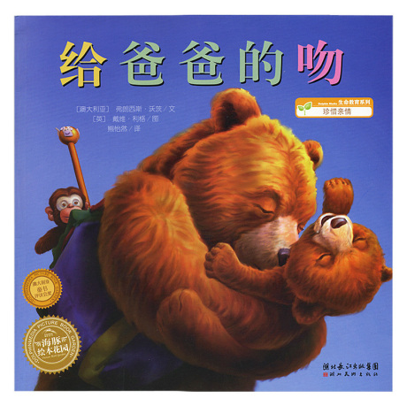 我们常说,母爱是圣洁和伟大的。其实,来自父亲的爱,又何尝不是如此呢。而且它往往比母爱又多了一些机智、雅谑和风趣。好父亲和好母亲一样,都是孩子的“第一所学校”。就像这个故事里的小熊的爸爸,他对自己孩子的心理、个性和倾向了如指掌,因而能因势利导、循循善诱,在看似游戏和玩闹中,完成了对孩子的照料、鼓励与引导。贯穿着整个故事的,是那暖暖的、怡怡的亲子之爱。这种爱从小熊爸爸的心灵里、目光里、谈话里,还有那机智的行动举止中,轻轻地、缓缓地流露出来,如涓涓清泉,滋润着小熊幼小的生命和单纯的心灵。而小熊献给爸爸的那个甜甜的吻,还有那个大大的拥抱,就是对这温暖的、无私的舔犊之爱的最好的回报。