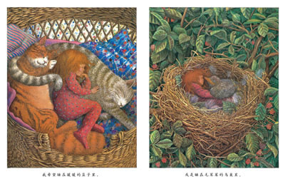 《当我想睡的时候》的作者简•R•霍华德和画者琳内•彻丽分别运用简洁浅白易懂的语言和鲜明逼真的水彩技巧,让小女孩带领读者进入闭起眼睛就可以徜徉的梦乡去,这个温暖的梦乡有陆上的猫咪、树上的鸟儿、浣熊、池塘的乌龟、山洞的小熊、原野上的长颈鹿、高山的山羊。